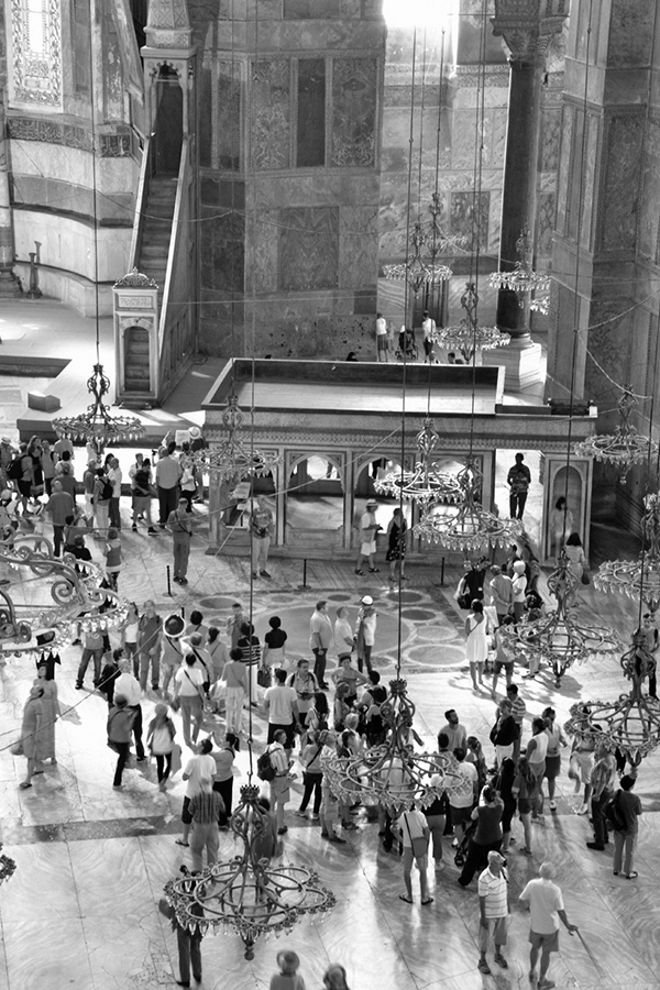 The work demonstrates that plastic harmony is contingent on light. Sanct Petri kyrka maintains constant integrity through the extreme containment of daylight and sunlight, in conjunction with a constantly lit plane of lamps floating above head height and black internal surfaces. Conversely during spatial discord induced by excessive luminosity, the church of le couvent de la Tourette descends into Mannerist earthliness. Through the conjunction of constrained sunlight and a plane of artificial light floating above head height, the secularized Ayasofya Müzesi sporadically attains plasticity and vestiges of the cosmic and the sacred.